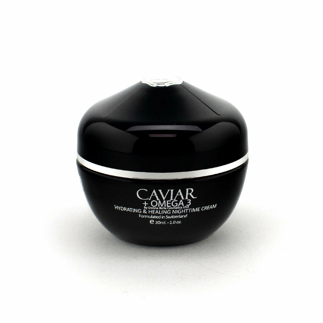 Donna Bellaโs Caviar + Omega 3 Caviar Hydrating & Healing Nighttime Cream replenishes lost moisture and helps to sooth weary and damaged skin. Continued use helps correct sun damage, minimizes wrinkles and restores volume.
