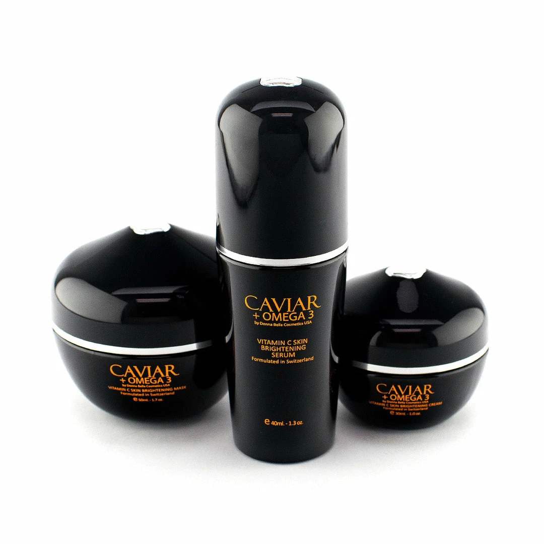 Donna Bella Caviar + Omega 3 Vitamin C Skin Brightening Mask combines Caviar, Vitamin C, Green Tea and Retinol to exfoliate and illuminate skin. Specifically created for individuals with sun damage, the green tea component has intense anti-inflammatory and anti-bacterial healing properties. Continued use brightens and firms while treating the effects of environmental damage on the skin.