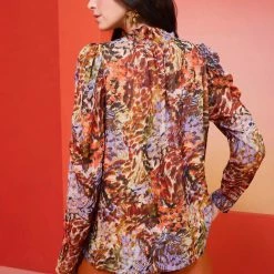 Thoughtful design details like pretty gathered sleeves that taper into tailored cuffs and an optional tie at the neck add a sophisticated edge to this romantic blouse, which is cut from our new Foliage print, inspired by the season’s changing colors and falling leaves. -Gathered sleeve that tapers to wrist-V-Neck with pleating details & necktie detail-Lined-True to Size