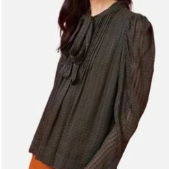 Details. Details. It’s thoughtful design notes like sheer gathered sleeves that taper to a tailored cuff, pretty pleating along the front of the bodice, an optional tie at the neck that can be worn loose or knotted into a bow at the neck opening, and the dreamy silk viscose check fabric that make Kimber a repeat favorite.-Pin-tuck detail down front-60% Silk/ 40% Viscose-Lined Bodice-True to size