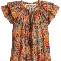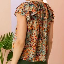 We’re big fans of our new Libba top, in a soft sage and abstract print. Style note – With a two-tier ruffle sleeve and slit front, Libba is meant to be worn untied to create a flattering v-neck.-71% ecovero rayon / 29% silk-2-tiered ruffle sleeve-Slit front with ties-Unlined-True to size
