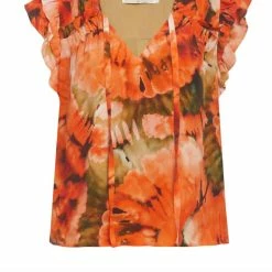 Enter Marie Oliver’s Phoebe Blouse. This easy silhouette’s seasonless style is underscored by our new Shell Fan print, a watery, tie-dye-like pattern that marries deep oranges and rusty reds with a warm juniper green and muted umber.-Ruffle detail at neck and sleeve-60% Rayon / 40% Silk-Fully lined-True to size