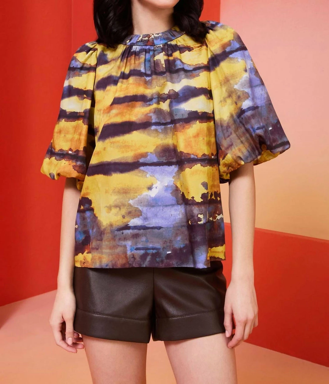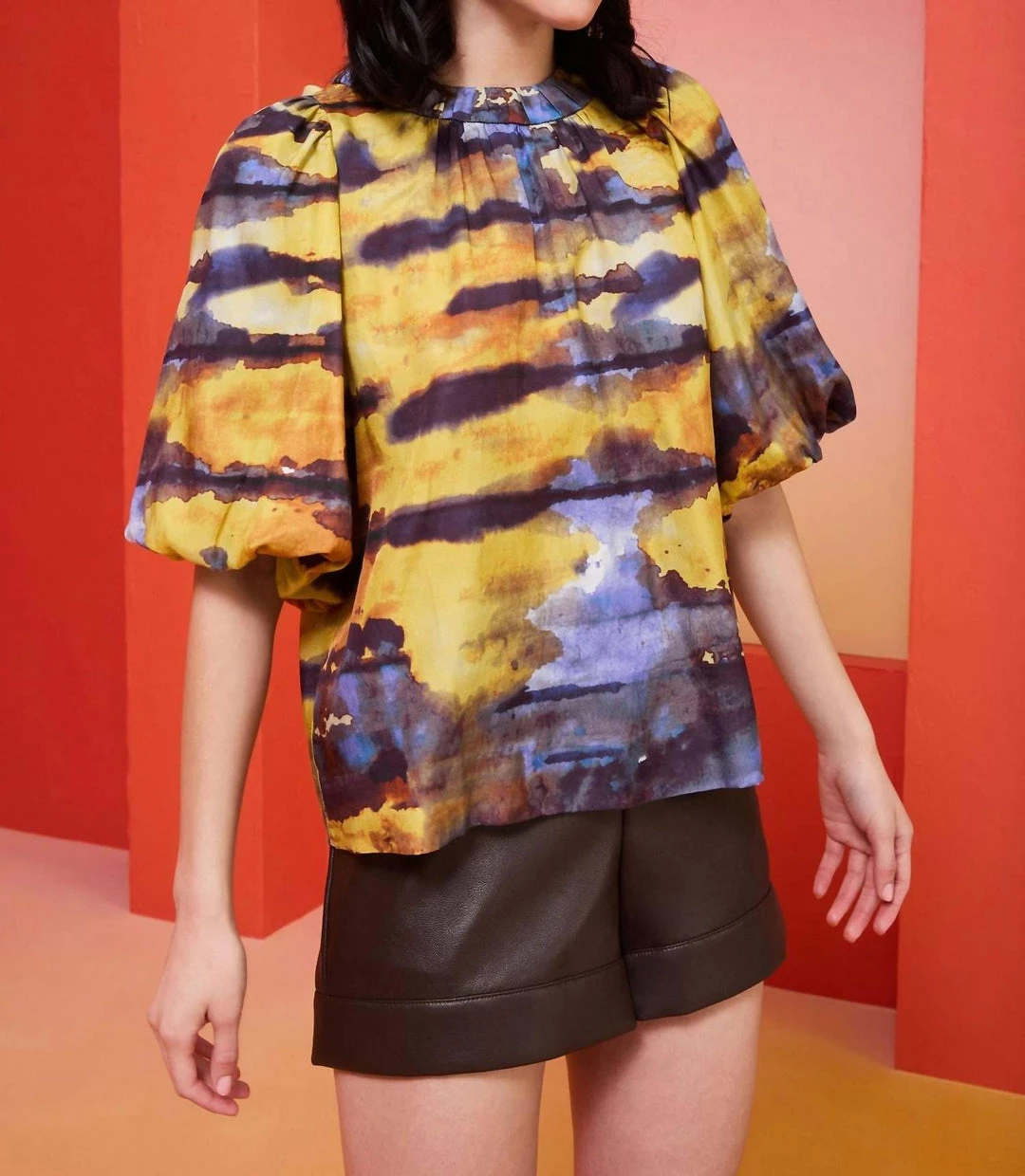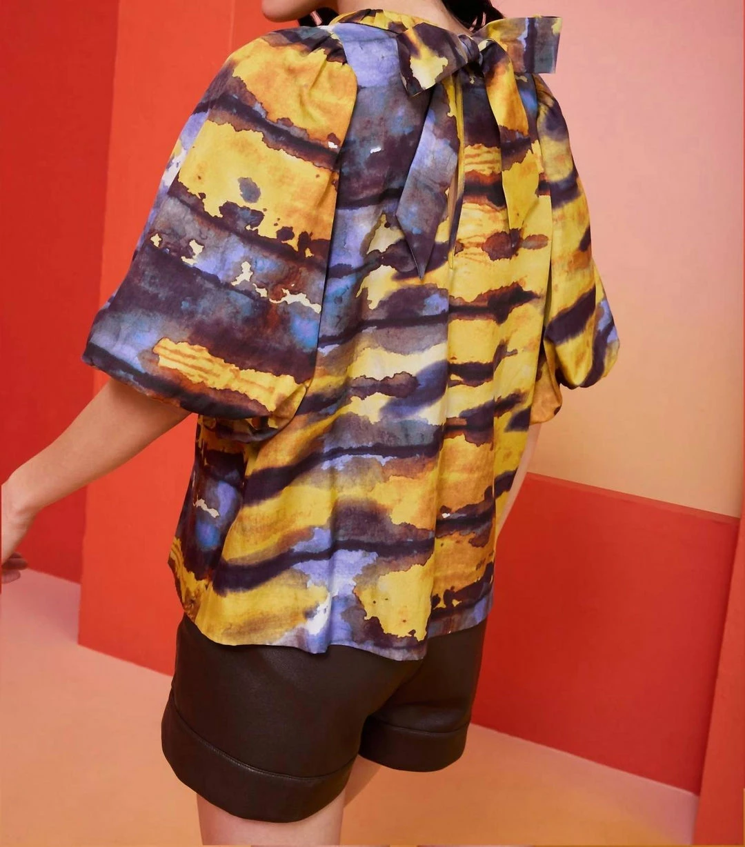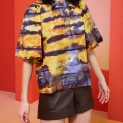Wren���s versatility is one of her best qualities, but cut from our new Tuscan Sunset print, an inky wash of golden wheat and soft periwinkle, she looks especially sharp as part of a dressier pairing as with our vegan leather Mia Short in Java.-30% Silk / 70% Cotton-Unlined-True to size