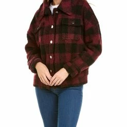 - Check Teddy Jacket In Red & Black With Spread Collar, Dual Chest Pockets, Dropped-Shoulder Sleeves, And Dual Side On-Seam Pockets