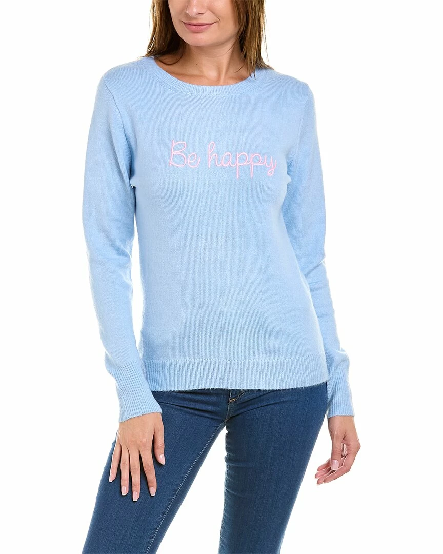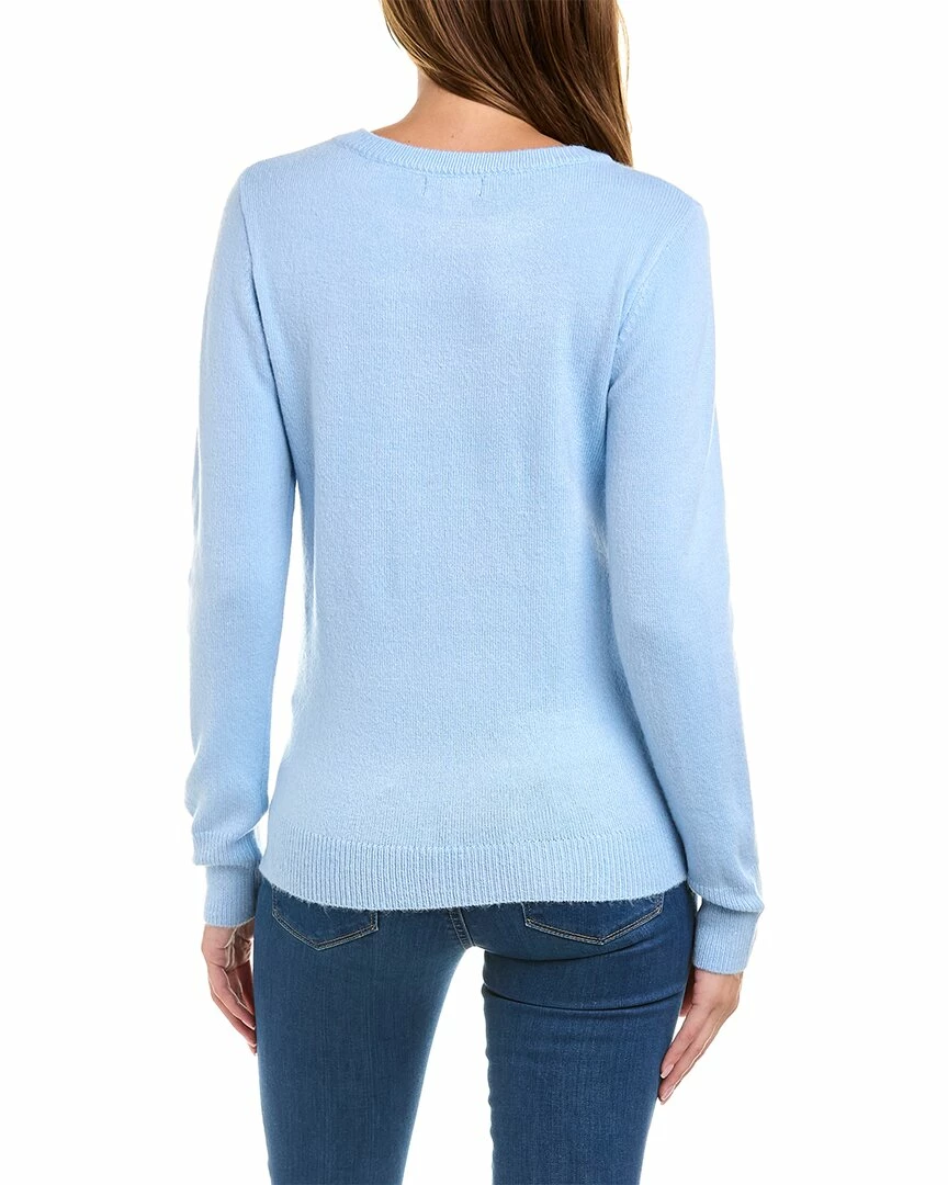 - Perfect Day Sweater In Light Blue And Pink Stitching With Embroidered Chest, And Ribbed Trim