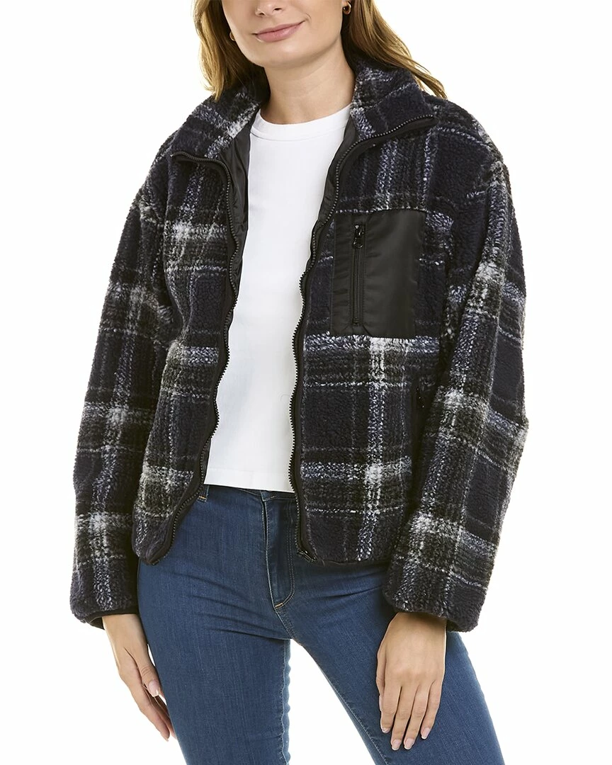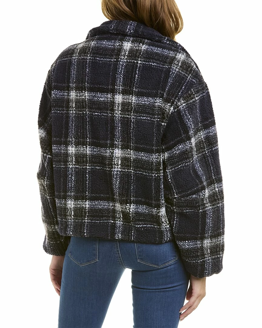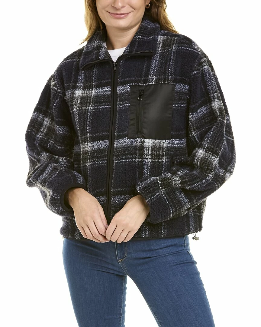 - Plaid Teddy Jacket In Plaid With Spread Collar, Left Zip Chest Pocket, Dual Front Zip Pockets, Elasticized Cuffs, And Drawcord Hem