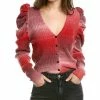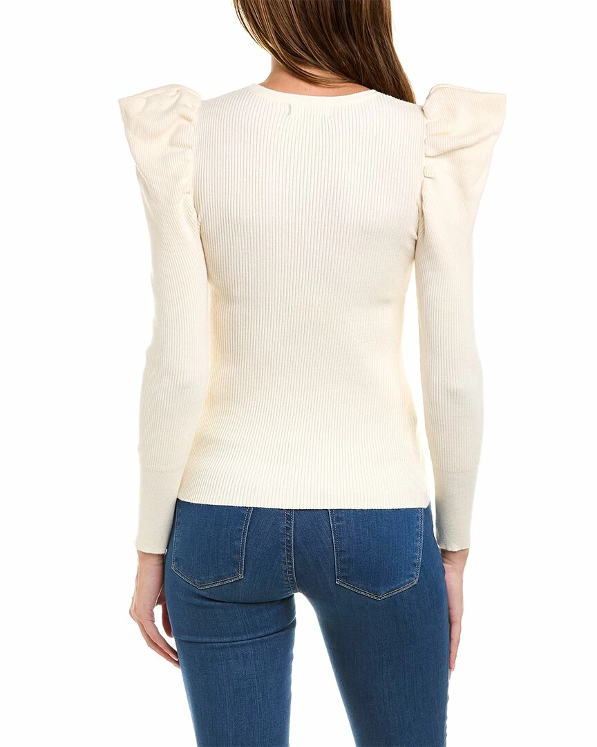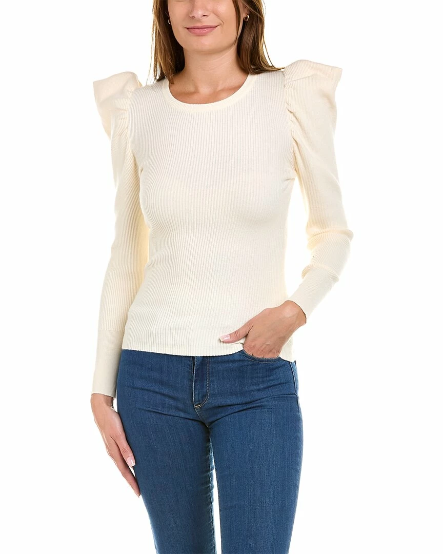 - Puff Sleeve Top In Ivory With Ribbed Knit Design And Puffed Shoulders
