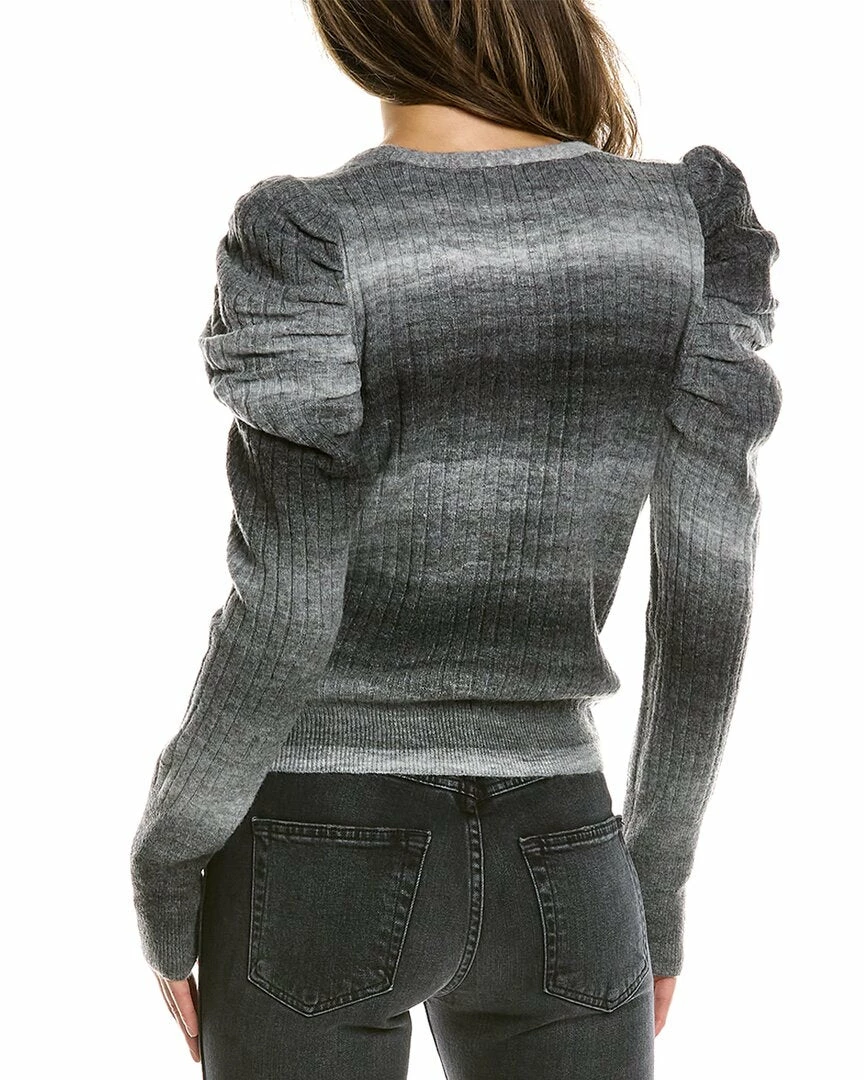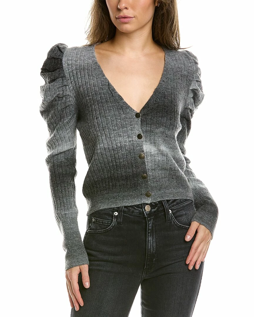 - Puff Sleeve Wool-Blend Cardigan In Black And Grey With Ribbed Design And Pleated Shoulders