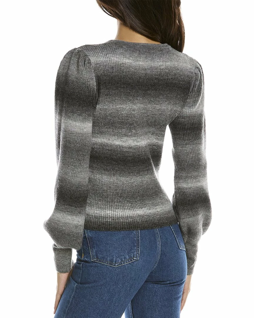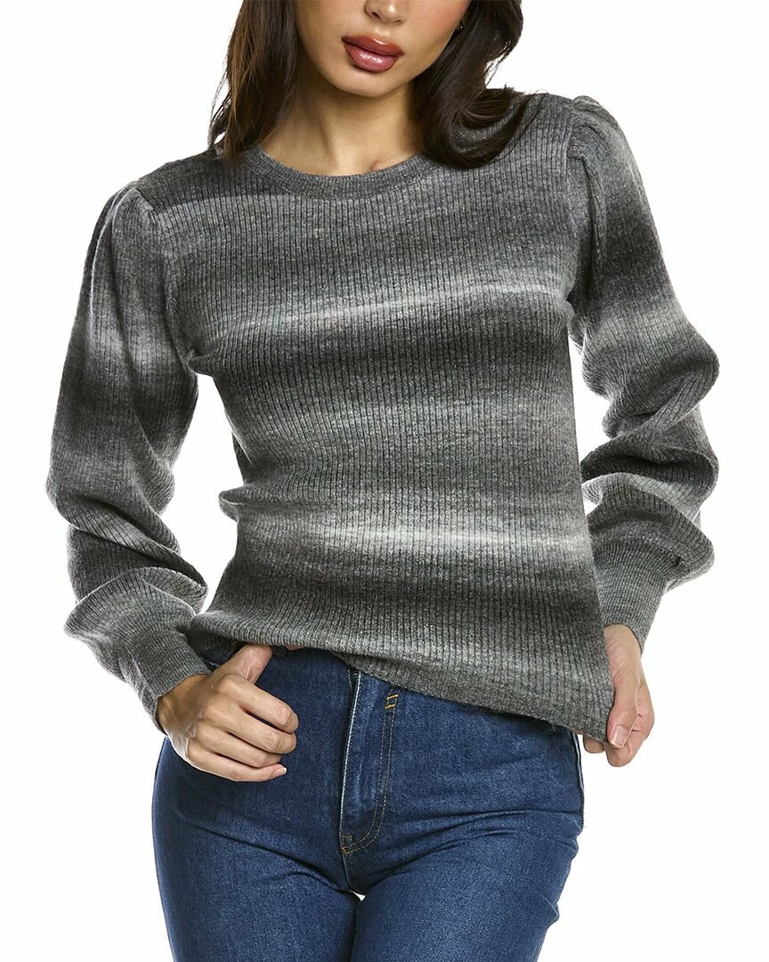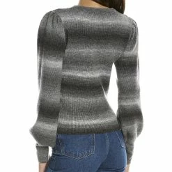 - Puff Sleeve Wool-Blend Sweater In Black And Grey Combo With Ribbed Design