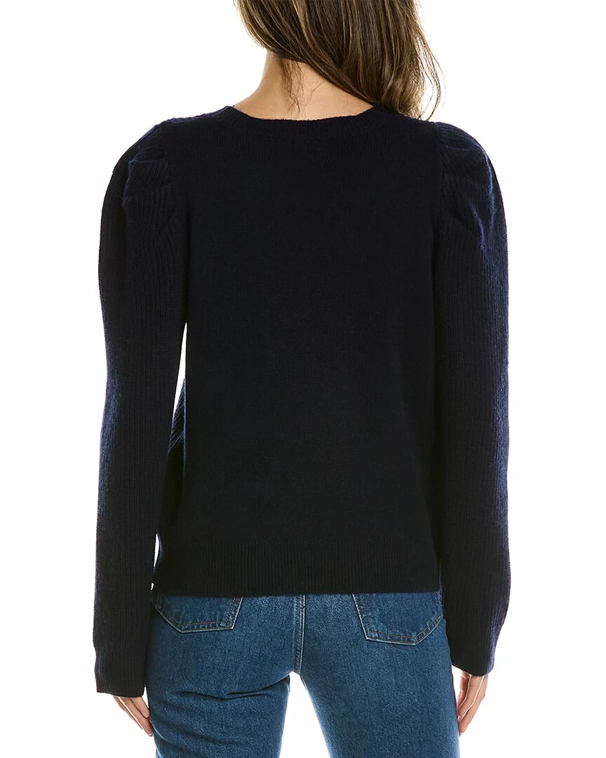 - Puff Sleeve Wool & Cashmere-Blend Sweater In Navy With Shaker Rib Design And Pleated Shoulders