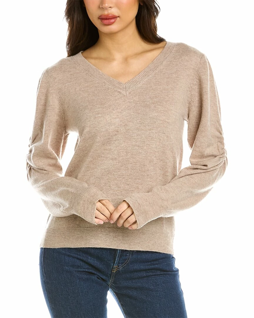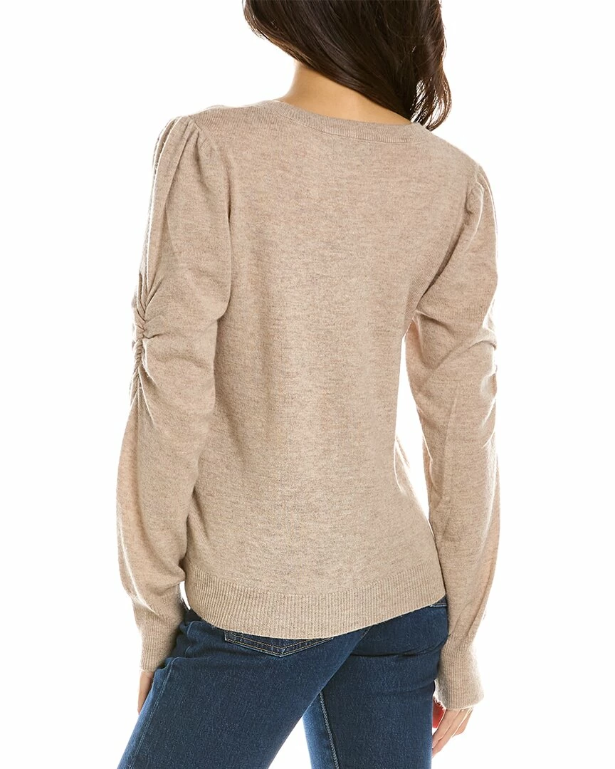 - Puff Wool & Cashmere-Blend Sweater In Oatmeal With Ruched Puff Sleeves