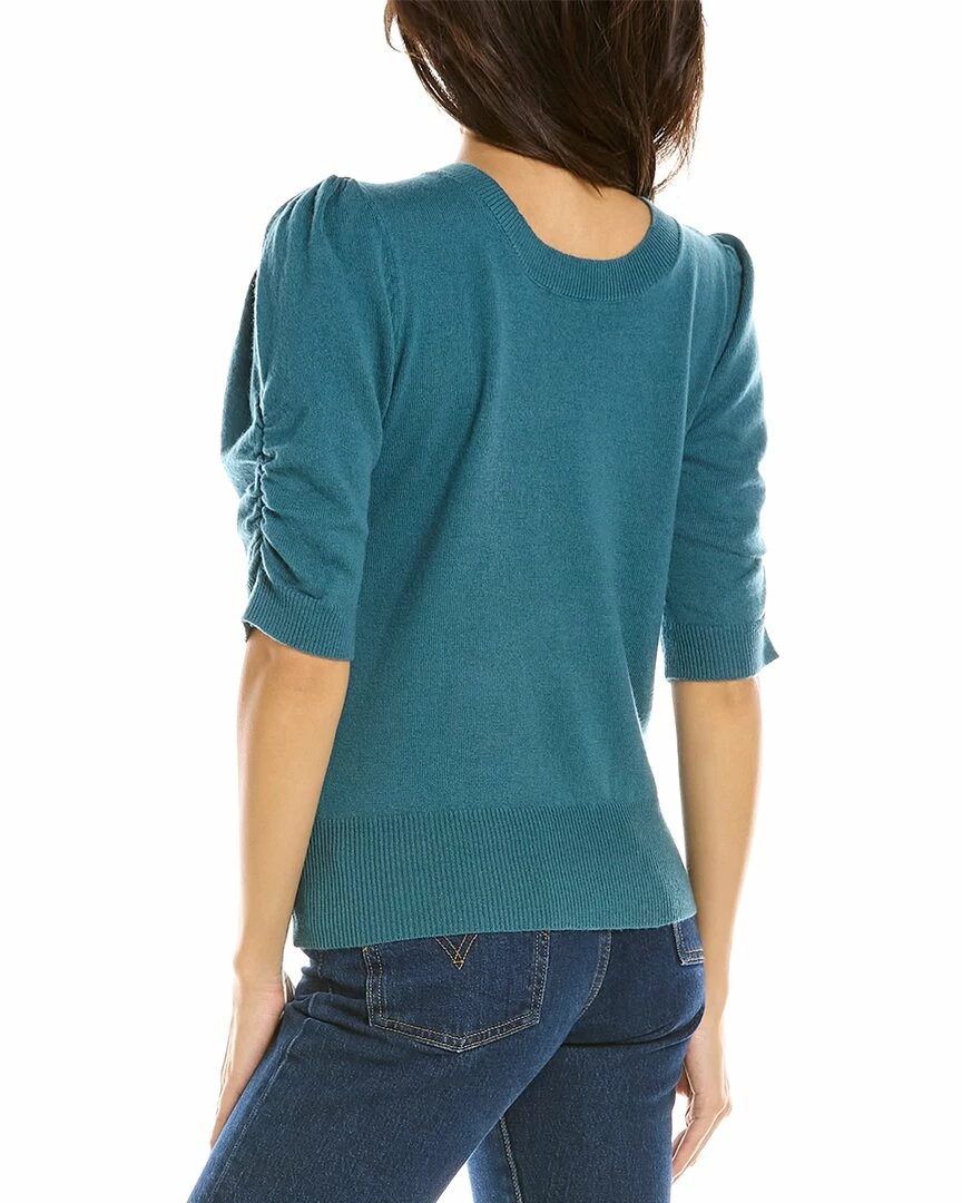 - Puff Wool & Cashmere-Blend Sweater In Teal With Ruched Puff Sleeves