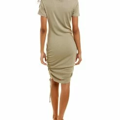 - Ribbed Mini Dress In Sage Green With Ribbed Design, Shirred Sides And Drawstring Accent At Hem
