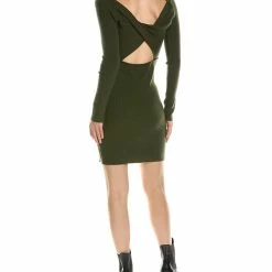 - Sheath Sweaterdress In Olive Green With Ribbed Design And Twisted Cutout Back