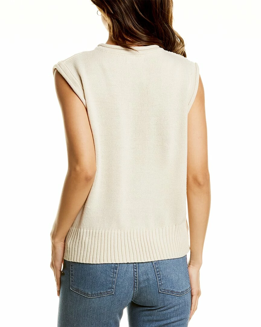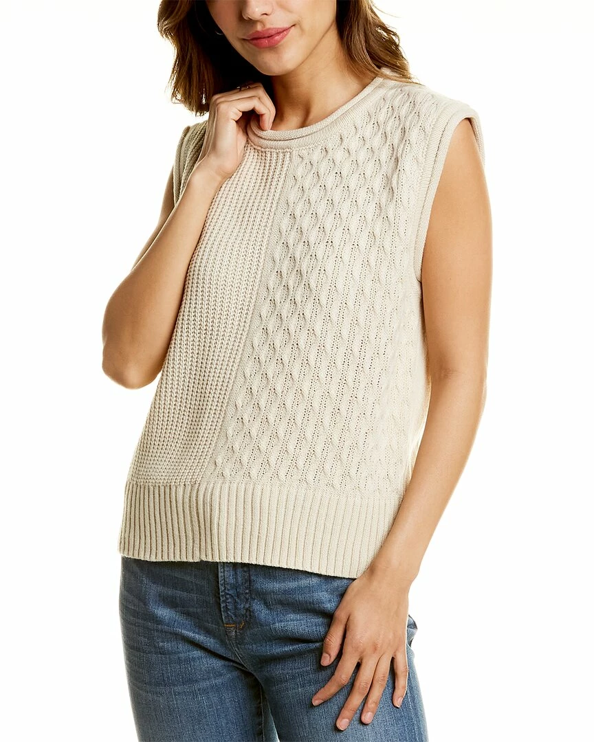 - Sleeveless Sweater In Ivory With Mixed Knit Design And Furled Trim