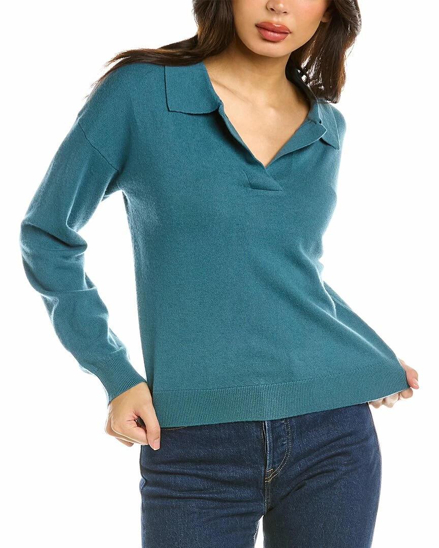 - Sweater In Teal With V-Neck And Spread Collar