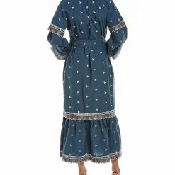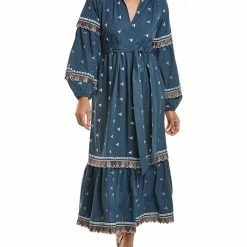 - Design Details – Embroidered Design, Split Neck, Belted Waist, Tiered Hem